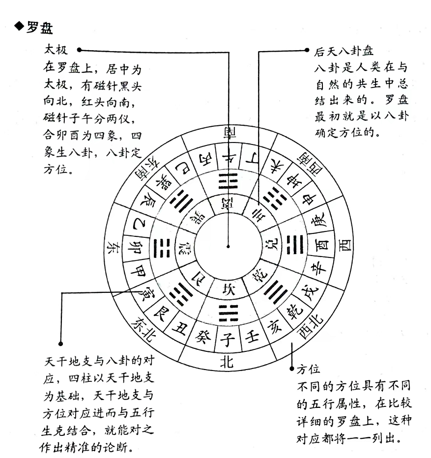四柱理论最基本的理论归依是以人出生时的时空条件确定人的轨迹,许多四柱论命者在论断人的命理时都会同时结合人出生地的方位,但在古代我们并没有精确的经纬度,方位的确定大多依靠罗盘,指南针等工具。以下仅以简化的罗盘为例说明其构造,并简要列举几种古代指南针。